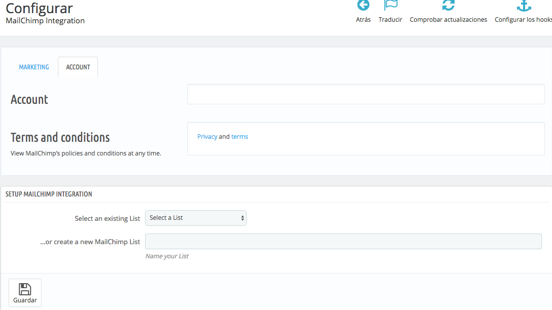 Ana Posted April 26, 2018 Share Posted April 26, 2018 (edited) Hola, Tengo problemas para enlazar el módulo de mailchimp, lo instalo, pongo la cuenta parece que se enlaza correctamente... pero como veis en el pantallazo no sale el nombre de la cuenta... Y después, voy a la parte para crear los emails y me vuelve a redirigir para que enlace la cuenta.... y así en bucle.. ¿Podríais ayudarme? No sé que hago mal... Muchas gracias. Edited April 27, 2018 by selectshop.at Mass capital letters on title removed by moderator (see edit history) Link to comment Share on other sites More sharing options...