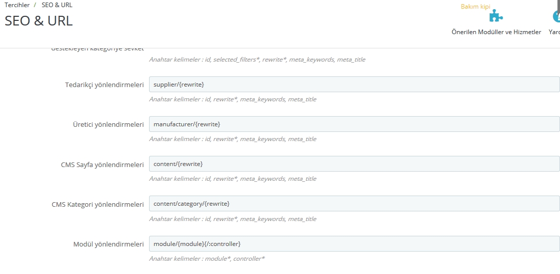 SeizeTheDay Posted April 26, 2018 Share Posted April 26, 2018 Merhabalar. Pretty URLS Remove ids numbers modülünü geçenlerde satın aldım. Modülü kurduktan sonra tüm sayfalarda id ler kalktı hiçbir sorun yok ancak CMS sayfalarında sayfa bulunamadı hatası alıyorum. Nasıl çözebilirim? teşekkürler. https://addons.prestashop.com/en/url-redirects/16633-pretty-urls-remove-ids-numbers-from-url.html Link to comment Share on other sites More sharing options...