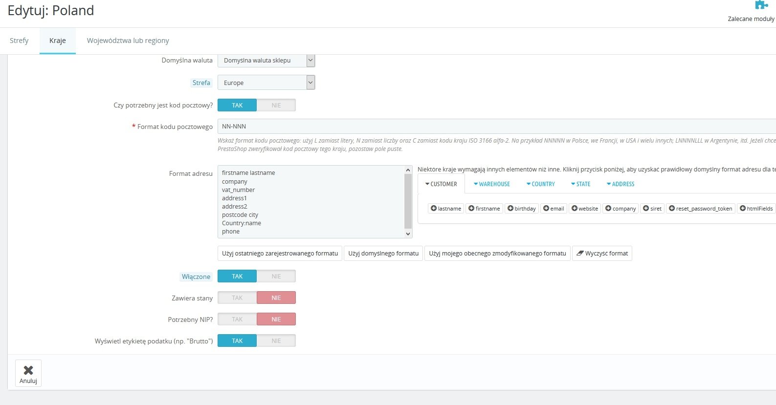 Cześć, mam pytanie, w jaki sposób mogę usunąć pola w adresach przy zamówieniach produktów, mianowicie chodzi mi o "firma", "NIP EU", "Uzupełnienie adresu" oraz opcje "Użyj tego adresu także do faktury". Dodam, że tryb B2B mam wyłączony. Wersja Presty 1.7.3.1 Pozdrawiam.