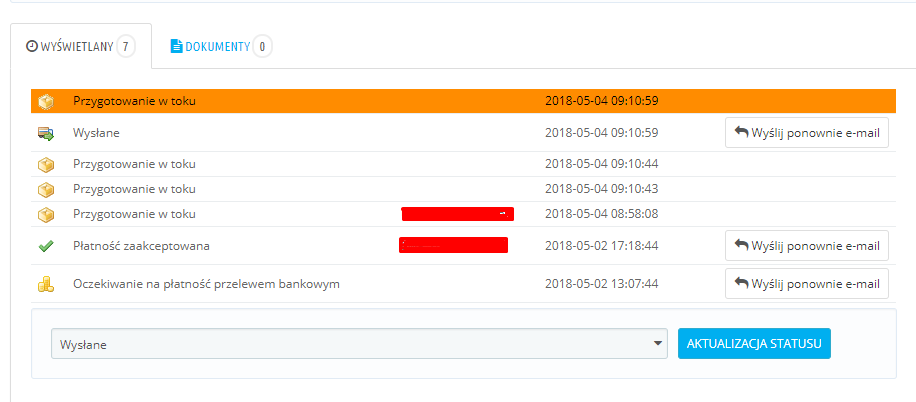mam problem ze statusami zamówienia. Czasem się duplikują, czasem zmieniają samoistnie bez powodu. Nie ma w tym regularności oprócz tego, że czasami przy zmianie jednego statusu na drugi występuje duplikacja tego drugiego. Czasem problem również nie występuje. A czasem duplikacja statusu nie ma związku czasowego z aktualizacją statusu. Poniżej zamieszczam zrzuty ekranu dla różnych zamówień i sytuacji. Niestety jestem w kropce a problem myślę, że dotyczy z 90% zamówień. Pomoc bardzo potrzebna