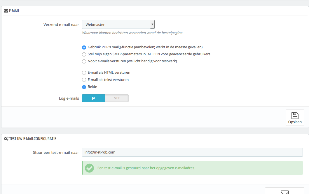 Rob Posted May 7, 2018 Author Share Posted May 7, 2018 Hallo, bedankt voor je reactie. Het gaat niet om een email alert na een bestelling. Het gaat mij om het volgende: Ik als reclamebureau bestel regelmatig bij "flyeralarm" Zodra ik daar iets bestel, krijg ik meteen een email met "uw bestelling is door ons ontvangen" Enige tijd later ontvang ik de faktuur per email. Nu heb ik als klant een bestelling geplaatst in mijn prestashop webwinkel en ik ontvang geen enkele bevestiging in welke vorm dan ook. Ik heb zojuist een testmail verzonden. Prestashop geeft de melding"Een test-e-mail is gestuurd naar het opgegeven e-mailadres." (zie screenshot) Deze is niet verzonden naar een gmail account maar naar mijn zakelijke email. Deze mail is na 5 minuten nog niet binnen. Link to comment Share on other sites More sharing options...