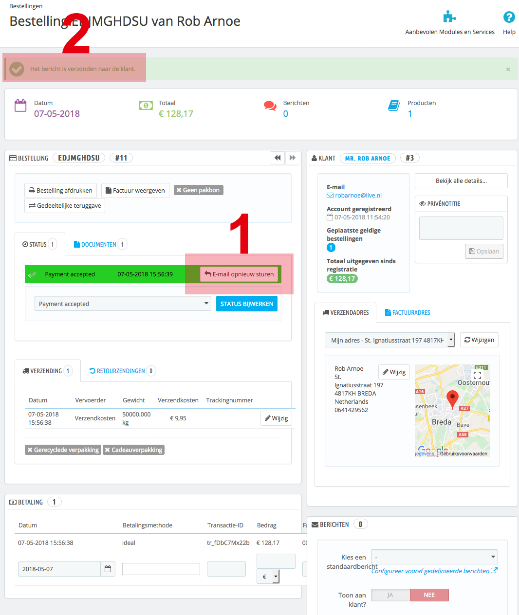 Rob Posted May 7, 2018 Author Share Posted May 7, 2018 1 uur geleden, Frevab zei: Via backoffice bestellingen een bericht sturen naar de klant (in dit geval jezelf) werk dat wel)? Ik heb het volgende geprobeerd (zie screenshot) Bij "1" heb ik geklikt op "email opnieuw versturen" Toen verscheen de melding "Het bericht is verzonden naar de klant" (zie "2") Maar de mail heb ik nooit ontvangen. Link to comment Share on other sites More sharing options...