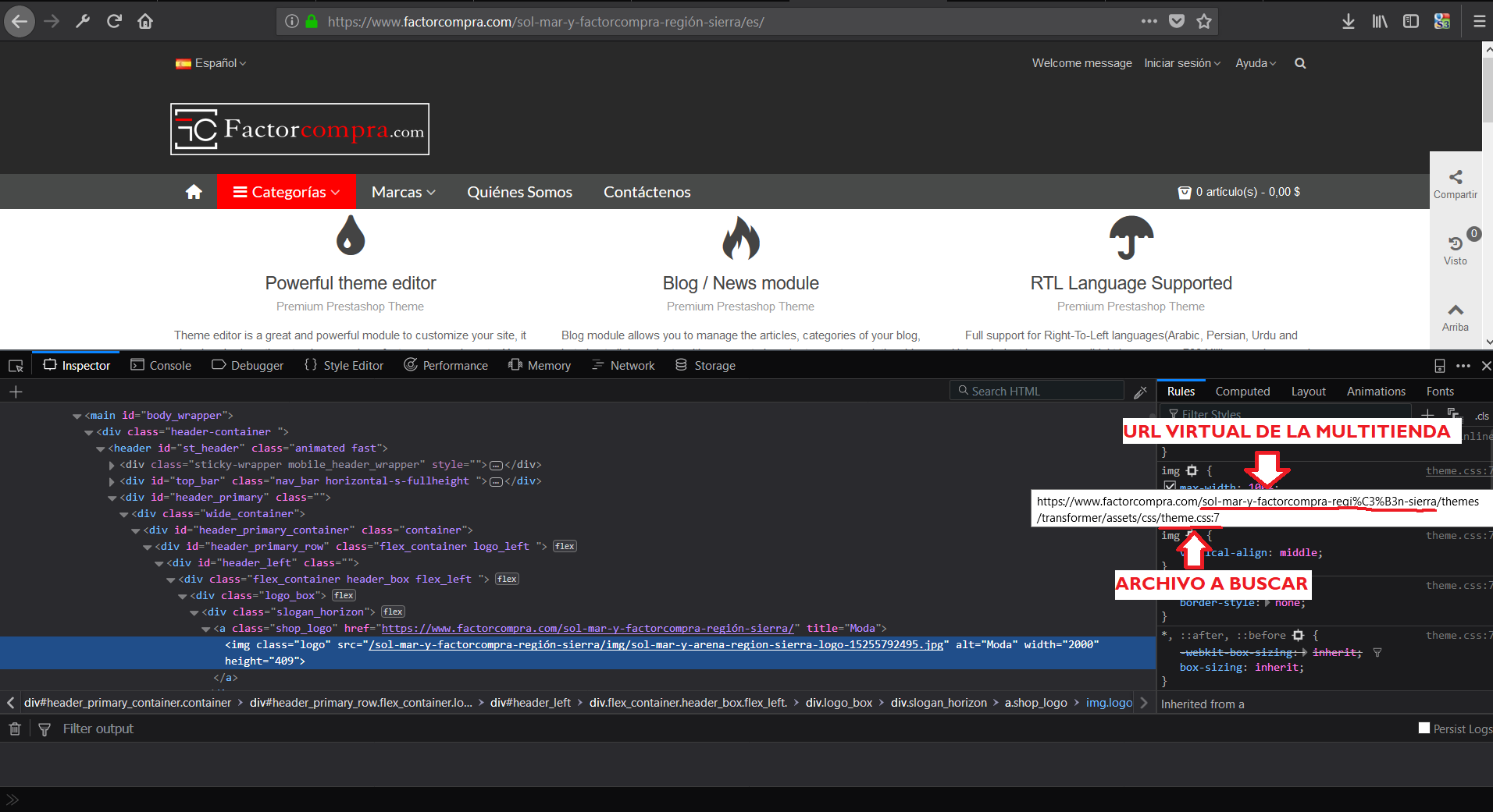 Cristian Posted May 8, 2018 Share Posted May 8, 2018 Buenas tengo una consulta, lo que sucede esque instalé multitiendas en Prestashop le puse URL "virtuales" para cada una de las tiendas necesito editar algo del css, voy a inspeccionar el objeto en mi navegador para ver el codigo y la ubicación del archivo css me sale en la URL "virtual" pero esta carpeta no existe dentro de los archivos de Prestashop porque es "virtual" y al no existir esta carpeta no puedo encontrar mi archivo css para modificarlo. Mi pregunta es donde se almacenan los archivos css de las multitiendas con URL "virtuales" Link to comment Share on other sites More sharing options...