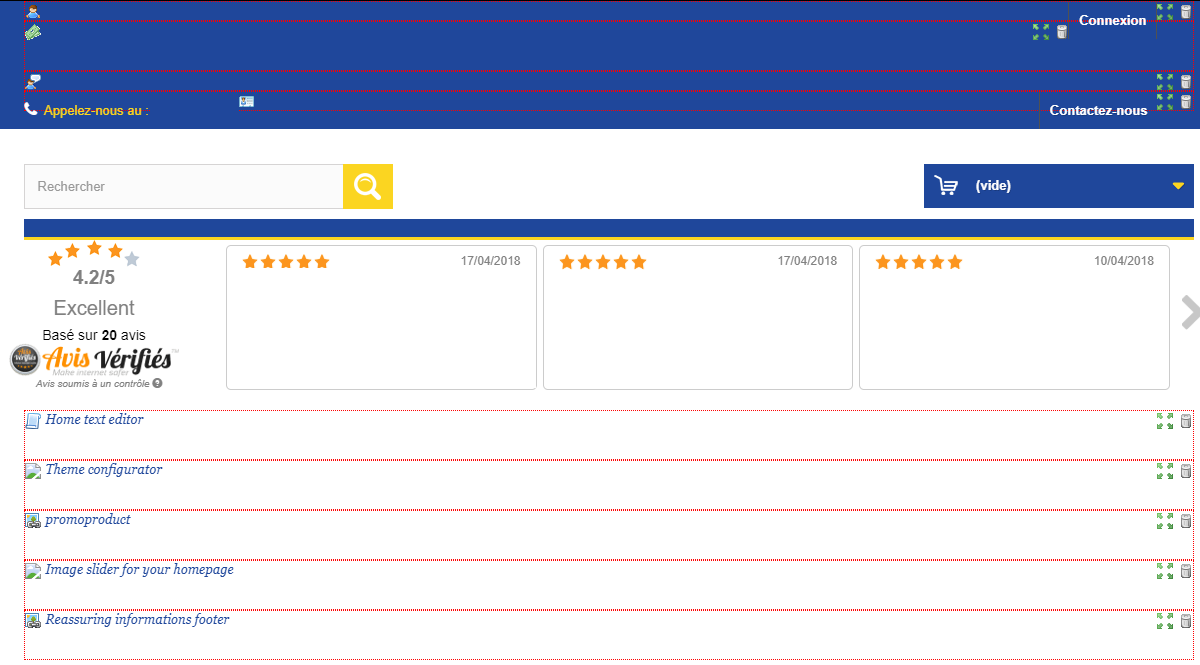 Vincentlaggaf Posted May 9, 2018 Share Posted May 9, 2018 Bonjour, Comme dit dans le titre j'aimerais enlever la partie Avis vérifiés de mon site,après avoir essayé de dé greffer le module de tous les hooks sur lesquels il se trouvait j'obtiens le résultat que je joins en image à savoir que mon block Avis vérifiés est toujours là ! J'ai essayé d'utiliser le live editor pour identifier si il était oui ou non accroché à un hook mais d'après la photo il semblerait que non... Je ne sais donc pas d'où provient le problème,auriez-vous une idée? Merci beaucoup, Vincentlaggaf Link to comment Share on other sites More sharing options...