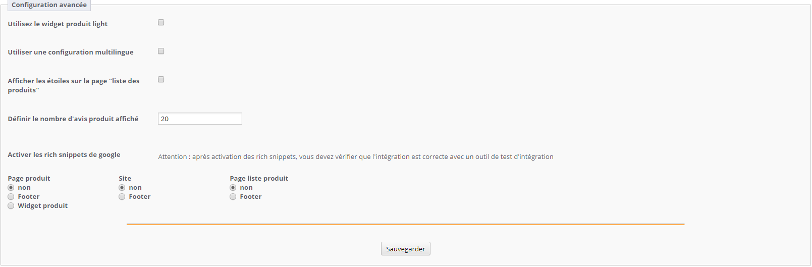 NicolasV Posted May 9, 2018 Share Posted May 9, 2018 Bonjour, Si vous souhaitez enlever Avis Vérifiés de votre boutique, vous pouvez simplement le désactiver/désinstaller depuis la gestion des modules dans votre back office. Si vous voulez juste l'enlever de votre Front office, il faut aller dans la configuration de votre module Avis Vérifiés > dans Configuration avancée : Décocher : Utilisez le widget produit light Décocher : Afficher les étoiles sur la page "liste des produits" Pour "Page produit" : mettre "Non" Pour "Site" : mettre "Non" Pour "Page liste produit" : mettre "Non" ATTENTION : En dé-greffant le module de tous les hooks, il est très probable que le module ne fonctionne plus comme voulu dans la récolte des avis . Link to comment Share on other sites More sharing options...