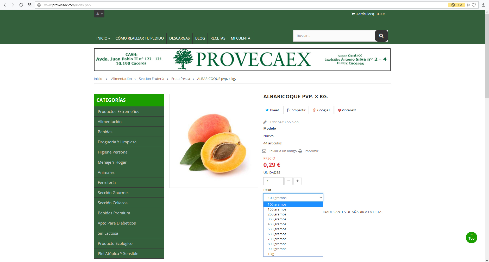Provecaex Posted May 11, 2018 Share Posted May 11, 2018 Buenas a todos. Necesito ayuda, ya que me trae de cabeza el siguiente asunto: https://www.provecaex.com/index.php?id_category=384&controller=category Esa es la web que tenemos para el trabajo. Funciona prácticamente todo bien, salvo que cuando el cliente quiere comprar productos al peso, es un lío tanto para él como para nosotros, ya que, a pesar de tener creadas las combinaciones pertinentes, y en algún producto como el albaricoque, creadas las modificaciones de peso y precio según la combinación que elijas, no cambia el precio, ni en la pantalla ni a la hora de formalizar la compra, por lo que nos encontramos que el cliente siempre suele pagar de más. Lógicamente se le devuelve la parte que corresponde pero es un engorro el tema de llevar cambio cuando es un pedido pagado con tarjeta. Estamos buscando algo como el corte inglés, que puedes elegir si quieres comprar por pieza o por peso, ya que de esta forma no conseguimos que funcione bien. Gracias y un saludo a todos. Link to comment Share on other sites More sharing options...