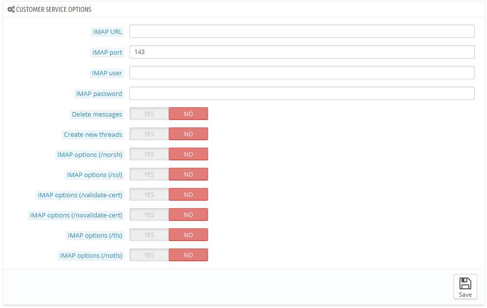 In den Einstellungen des Kundenservice habe ich versucht, die SMTP Einstellungen des Mailaccounts einzurichten, den ich für den Shop benutze.