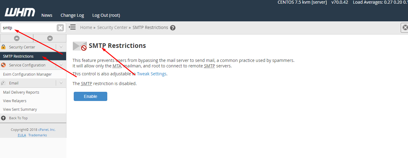 If you have  access to WHM turns off this feature (SMTP Restrictions)(Picture Attached)