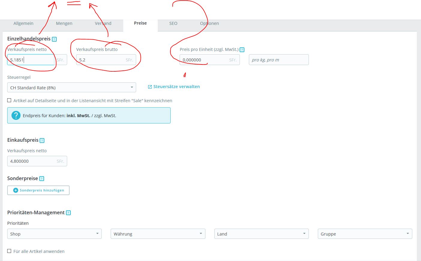 Ich habe die Artikel eingegeben und habe  nun das Problem mit dem Einzelhandelspreis.