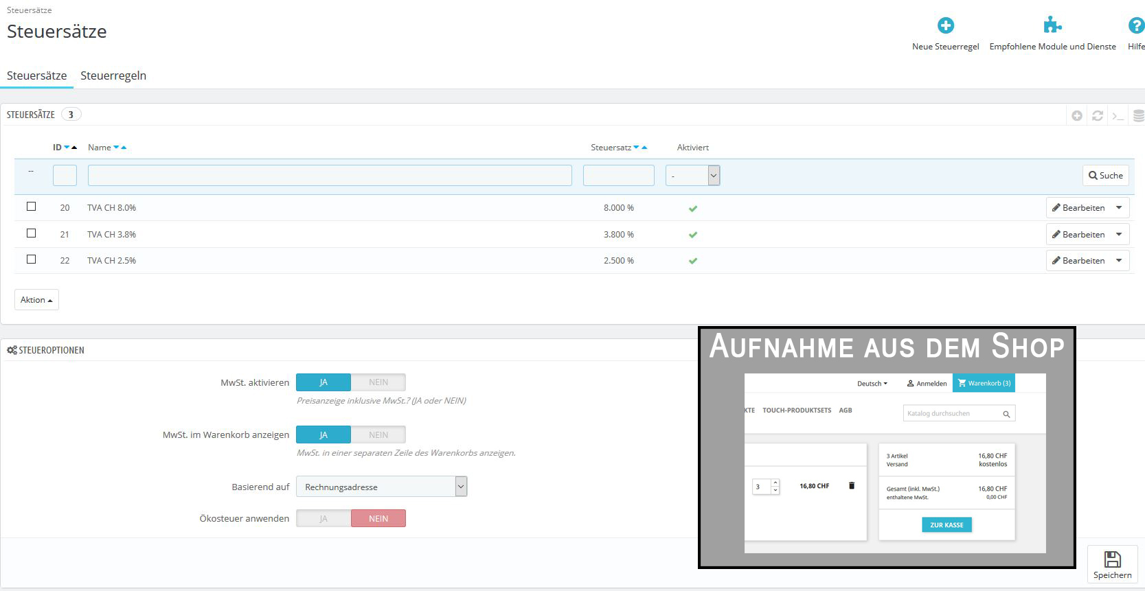 Hier nochmals ein Bild (Frage2.jpg) zu den Einstellungen im Bereich Steuersätze: