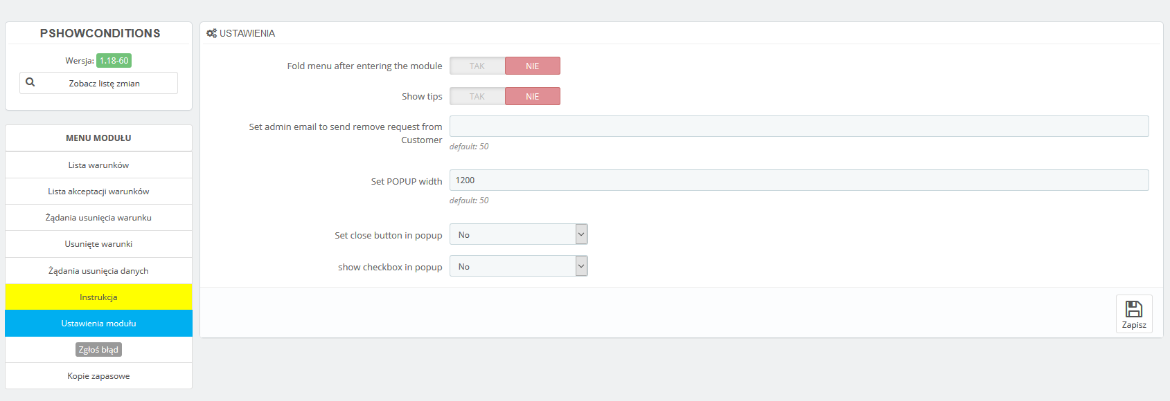 • The module has been fully translated into Polish and English, and all content displayed can be freely modified from the PrestaShop translations panel