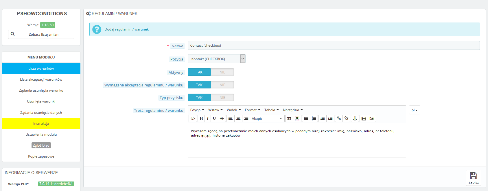 PrestaShop Consents and Terms and Conditions Manager (GDPR, RODO)