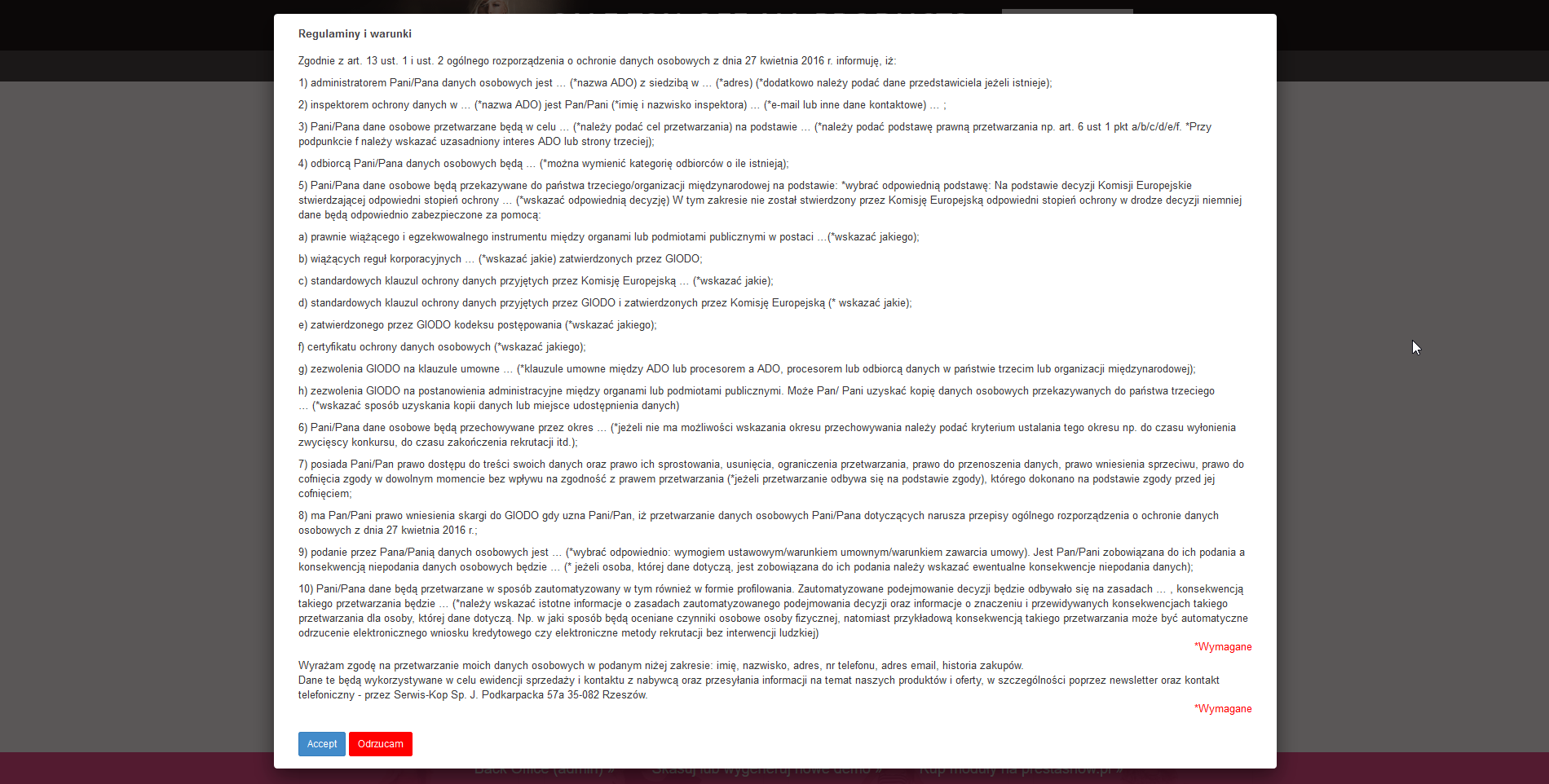 • Blocking purchase – blocking purchases in the store when a term has not been accepted by a customer. This way your store will meet the GDPR requirements which have to be accepted by customers of every online store.