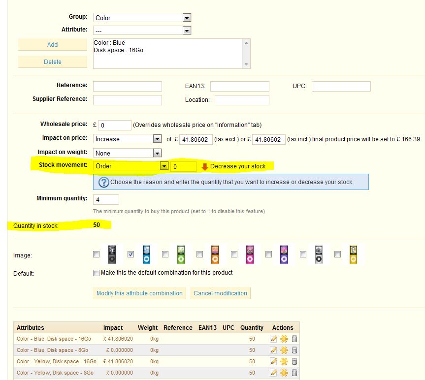 Let say I have Canon Ixus 130 in zilver, orange, black, all in stock 2 pieces, but Presta shows 6 in total. I prefer to show the quantity of one color.