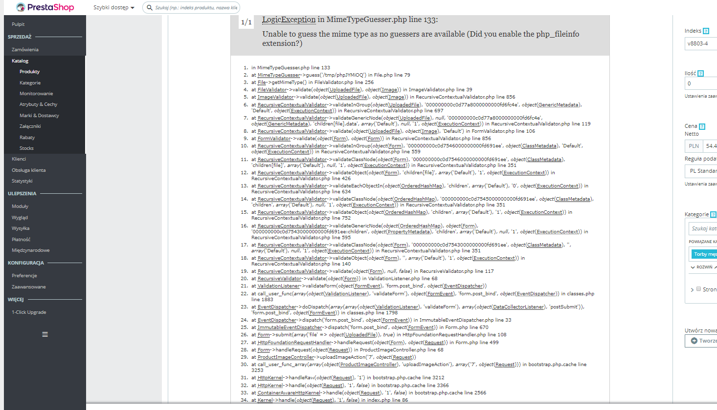 Nie mogę dodawać zdjęć produktów, mam komunikat: server responded witch 500 code.