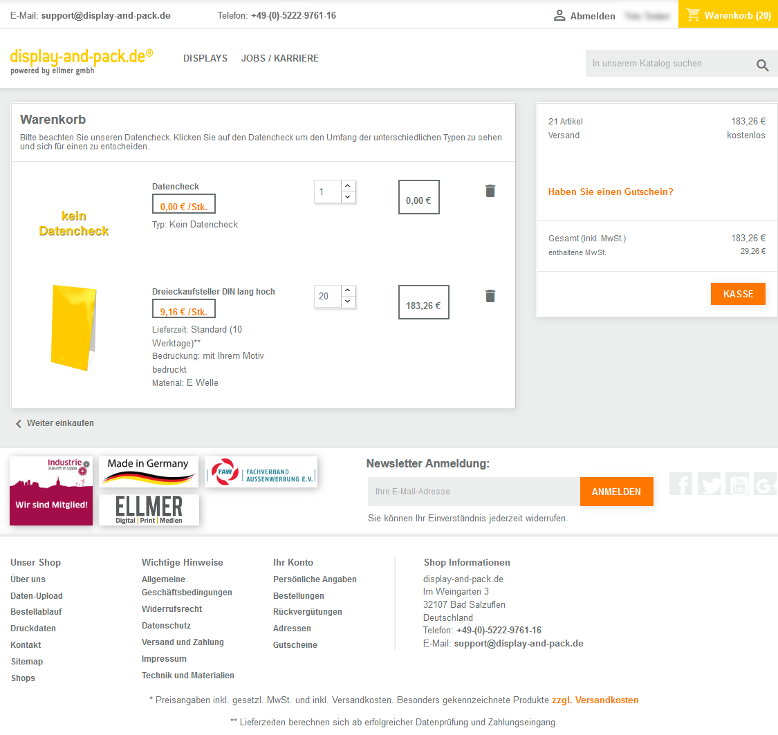 Mexxat Posted May 25, 2018 Author Share Posted May 25, 2018 Habe 2 Screenshots angehängt. Die URL is bewusst abgeschnitten (da der Shop noch nicht online ist / Wartungsmode) Warenkorb (da sieht man das Banner): Order (Checkout) ohne Banner nur reduziertes Logo Schaut ein wenig "komisch" aus ohne Banner mit dem Mini Logo Link to comment Share on other sites More sharing options...