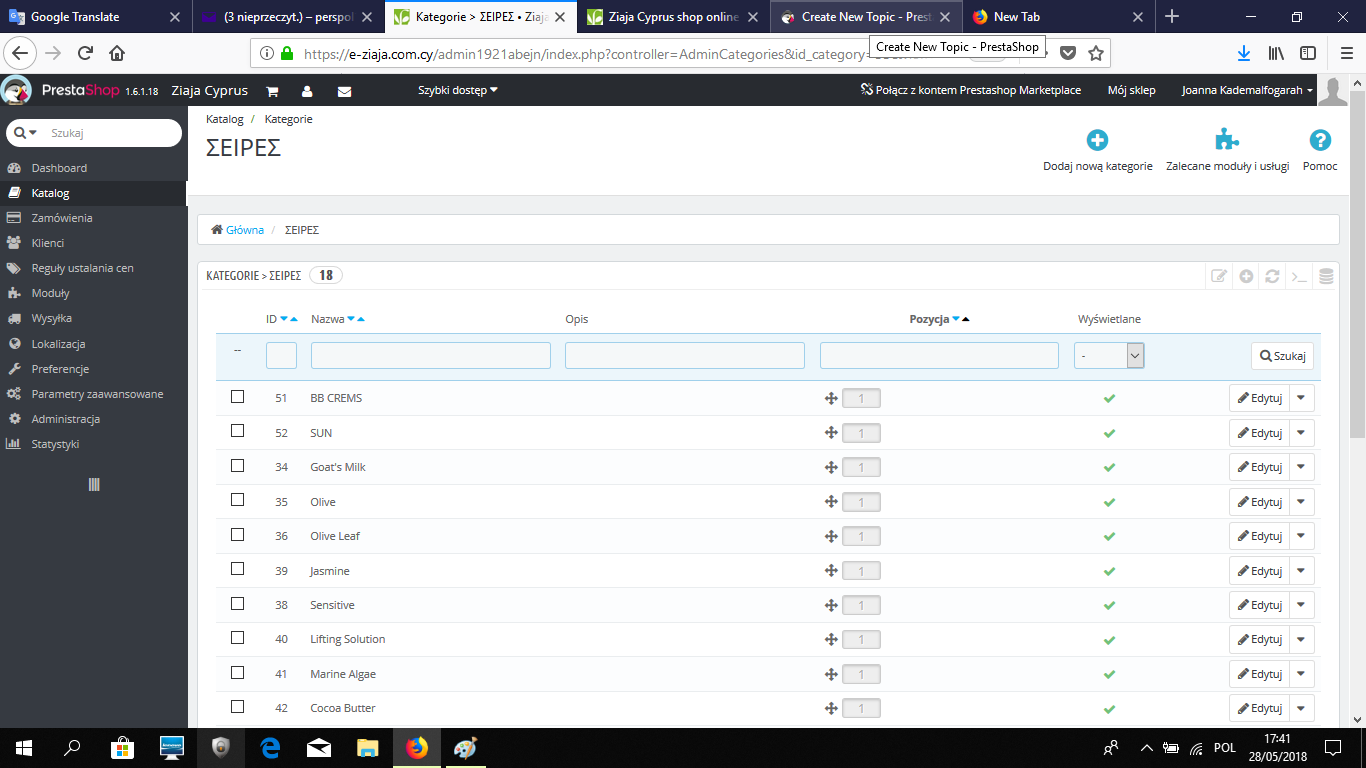 Joanna Posted May 28, 2018 Share Posted May 28, 2018 Witam Zbudowałam sklep na presta shop 1.6.1.18 Wszystko było ok gdy nagle zniknęły wszystkie powiązania produktów do kategorii W menu poziomym nie wyświetlają się podkategorie. Gdy weszłam do katalog -> kategorie zobaczyłam , że wszystkie podkategorie istnieją ale nie wiadomo dlaczego wszystkie mają pozycję 1 a także żadnej nie mogę edytować. Nie wiem co się stało i nie wiem jak ten problem rozwiązać. Proszę o pomoc. Link to comment Share on other sites More sharing options...