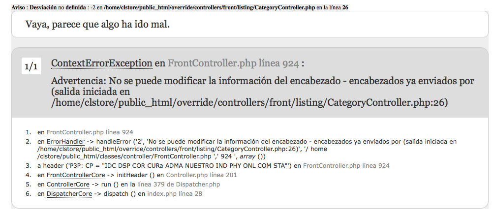 Necesito ayuda de la nada en prestashop version 1.7.2.4, de la nada al momento de estar en el carrito de compras y presionar pagar me arroja error 500, lo puse en modo debug y me arrojo lo siguiente lo que adjunto en captura de pantalla.