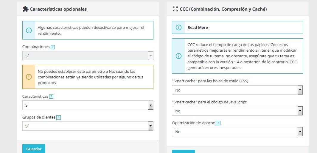 nadie Posted June 4, 2018 Share Posted June 4, 2018 hace 14 minutos, sylarlocke dijo: Muchas gracias nadie, efectivamente esa era una de las soluciones para poder quitar lo del problema de smart cache en "si", lo he modificado antes lo vi aquí: https://www.prestashop.com/forums/topic/713149-cannot-turn-off-smart-cache-for-css-in-ps173/ Os cuento como sigue la cosa. Tengo en el servidor versión 1.7 con la configuración de rendimiento igual que la 1.6(aunque este está en otro servidor) y en local tengo la 1.6 y la 1.7. Pues bien, resulta que en local si que funciona >_< con la misma configuración que en el 1.6, asi que entiendo que tiene que ser algún parámetro de php.ini del servidor, quizás algo relativo a la cache, como mem_cache o similar. ¿Sabéis que directiva del php.ini hace esto o como puedo verificar donde está esa directiva que está impidiendo que refrésque? Es extraño porque en la instalación lo único que marcaba un error era con esta directiva y la arreglé: short_open_tag = on Gracias por vuestra estupenda ayuda, a ver si conseguimos solucionarlo. ¿Y que es lo que no te funciona que te funciona en Prestashop 1.7? Ahora mismo con CCC -> CSS -> NO ¿Te ha guardado la modificación en la BD? ¿Te deja ahora cambiar el parametro a NO desde el panel? ¿Si haces cambios en los CSS y refrescas el navegador, ves o no los cambios ahora? La configuración del servidor recomendada para Prestashop 1.7 es la siguiente: https://www.prestashop.com/forums/topic/633857-server-requirements-for-ps-17/ (https://victor-rodenas.com/requisitos-del-servidor-en-prestashop-1-7/) Si fuera alguna configuración del servidor (algún tipo de cache activa), en principio no se limpiaría incluso limpiando la cache manualmente de Prestashop Link to comment Share on other sites More sharing options...