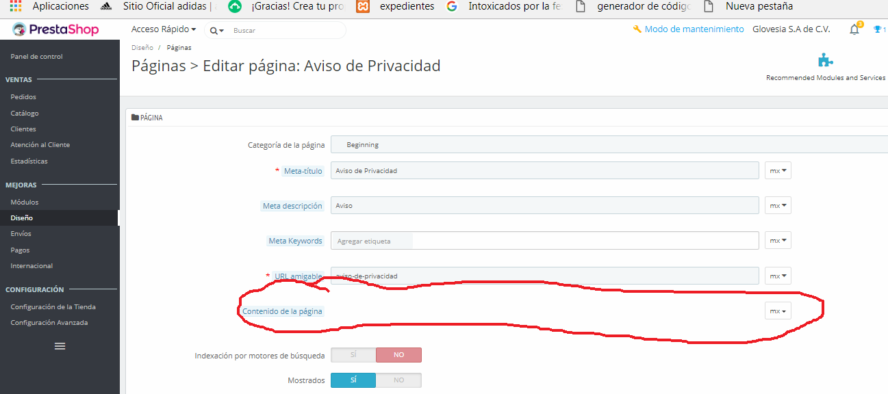 Hola a todos espero me puedan ayudar pero en diseño- paginas no me habilita el campo "contenido de la pagina", esto lo hace con todas las paginas, (anexe una evidencia) y como segundo problema al deshabilitar el idioma ingles me borra toda la información de la tienda no puedo ver ningún producto y si se habilita aparece nuevamente.