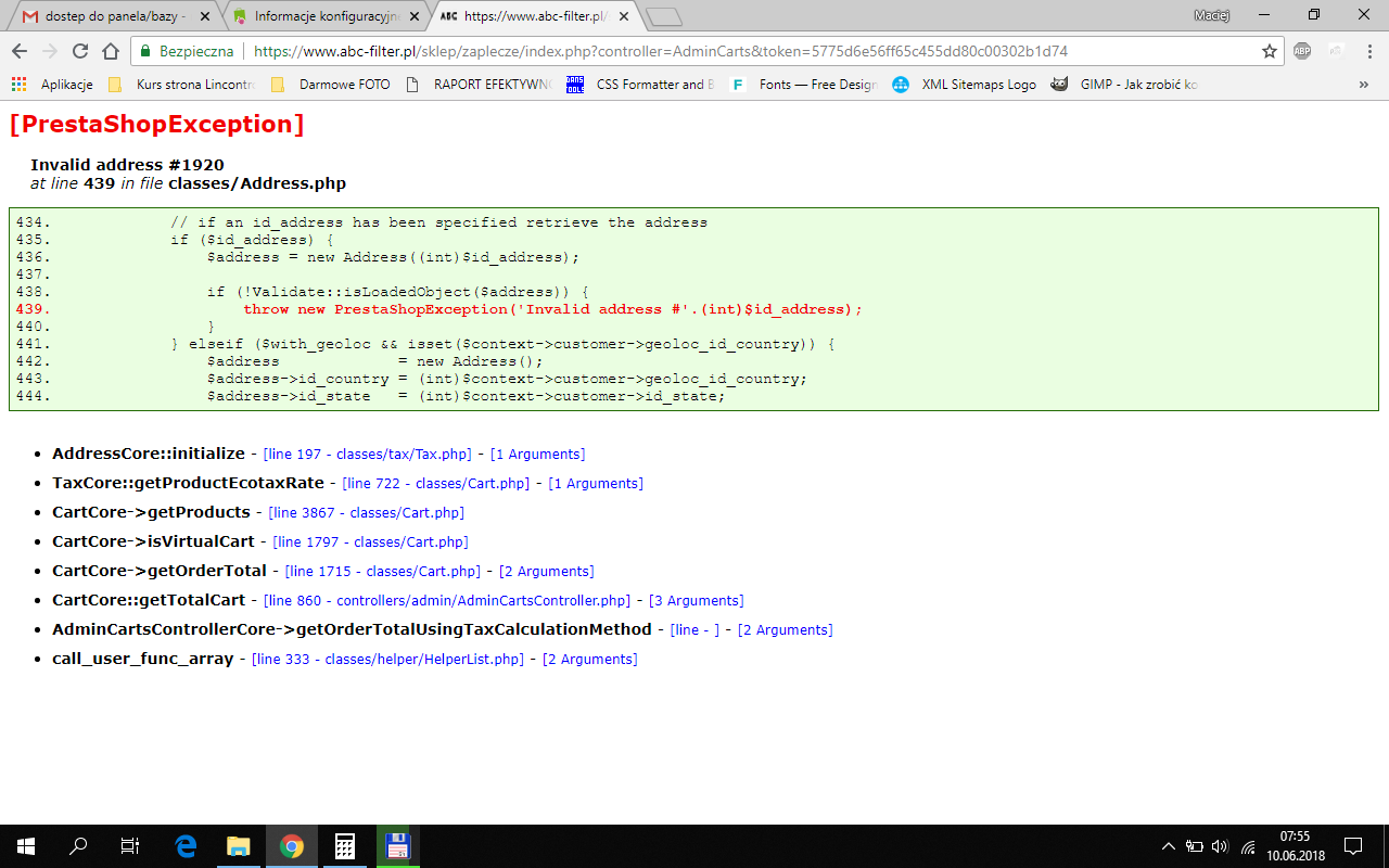 Zauważyłem ostatnio błąd gdy wchodzę na porzucone koszyki zakupowe.