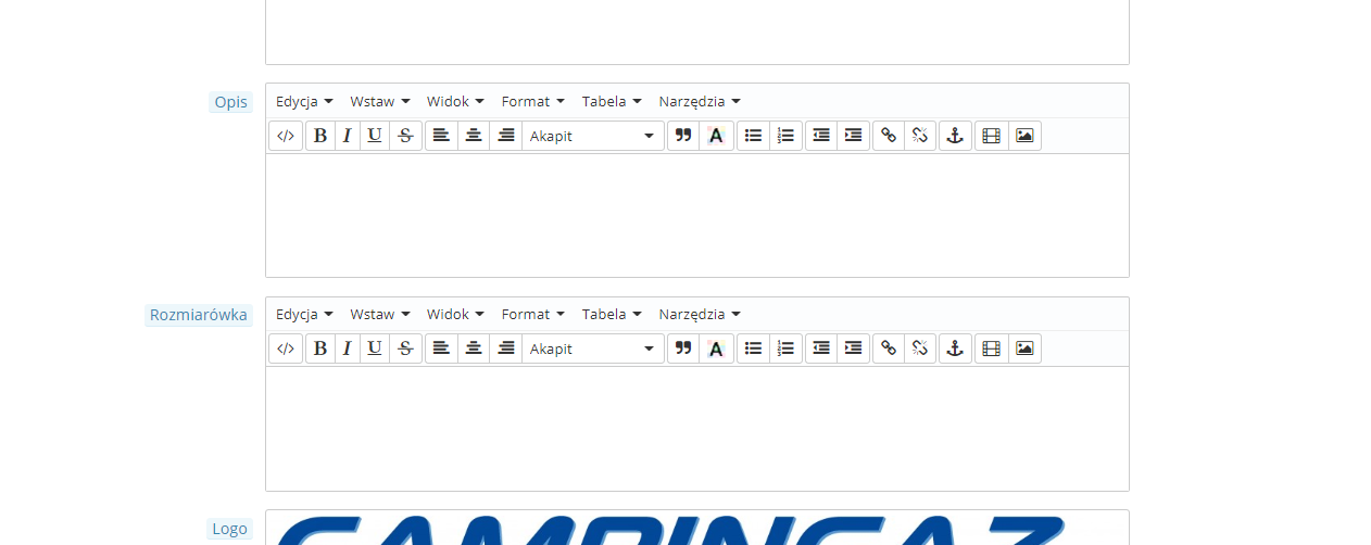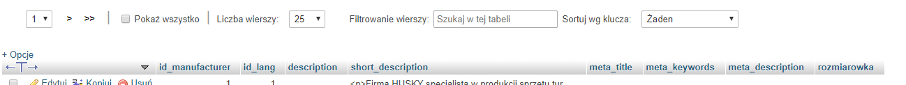 Próbuję dodać nowe pole "Rozmiarówka" dla każdego producenta, pole dodałem