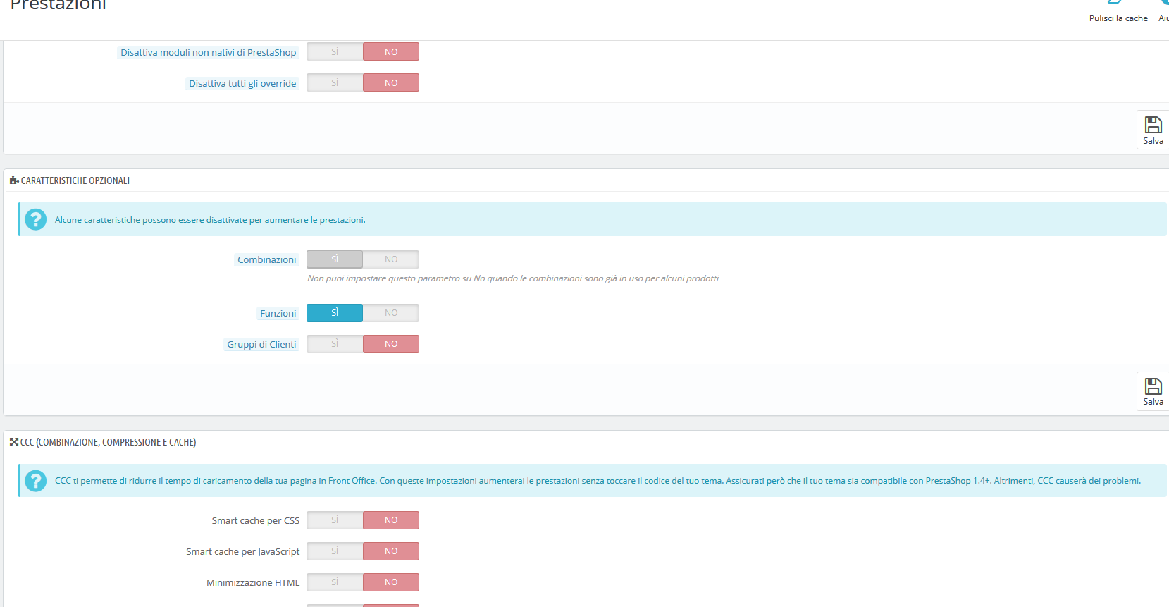 siengo1971 Posted June 18, 2018 Share Posted June 18, 2018 (edited) Buongiorno a tutti, sul mio store non sono attive le combinazioni prodotti e la relativa gestione degl'attributi. Sono andata nella sezione Prestazioni -> Caratteristiche opzionali e mi trovo la voce combinazioni su SI ma con sfondo grigio. Come nell'immagine che allego al presente topic. Grazie Edited June 18, 2018 by siengo1971 (see edit history) Link to comment Share on other sites More sharing options...