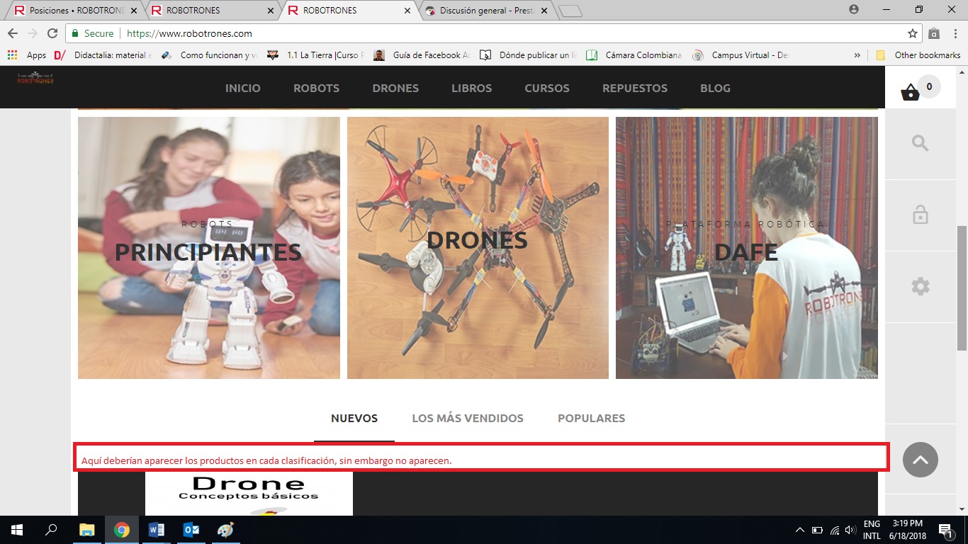 Rodrigo Posted June 18, 2018 Share Posted June 18, 2018 Cordial saludo, agradezco de antemano a la comunidad por la ayuda. Tengo la versión 1.6.1.18 e instalado el tema 53967. He creado 4 productos, todos virtuales, pero ninguno aparece en la página de inicio. Tengo montados los bloques mas vendidos, populares, promociones especiales y nuevos en el displayhometab y el carrusel de productos en el displayhometabcontent, pero ninguno de los productos aparece en la página de inicio. He intentado cambiar la categoría por defecto a la categoría de inicio y tampoco funciona. Link to comment Share on other sites More sharing options...
