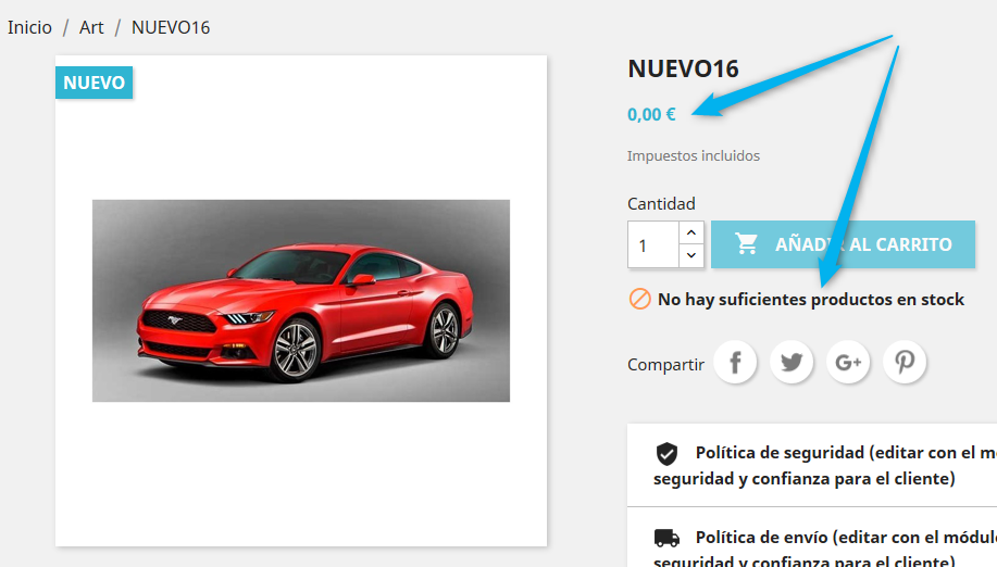gusman126 Posted June 20, 2018 Share Posted June 20, 2018 hace 2 horas, Victor Casajuana Mas dijo: Hola de nuevo. Me autorespondo con la solución, He rebuscado en las tablas y hay un parámetro que asignaba incorrectamente en el XML que pasaba al webservice para crear el producto: cache_default_attribute lo asignaba a la misma ID que id_category_default , y si el producto no tiene atributos y cache_default_attribute tiene valor, entonces lo que ocurre es que no se activa el botón del carrito de la tienda ni tampoco se muestra el precio. Lo pongo por si alguien más le ocurre este problema que no se vuelva loco buscando el porque. Gracias. Link to comment Share on other sites More sharing options...