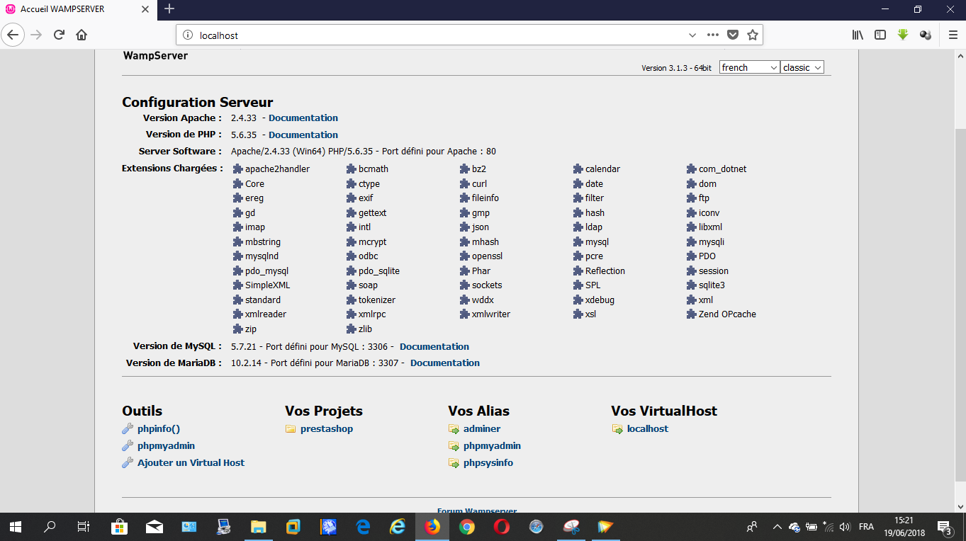 Luc Posted June 19, 2018 Share Posted June 19, 2018 Bonjour à toutes et à tous, Qu'est-ce qui peut faire que l'installation de PrestaShop 1.7.3.3 ne puisse pas démarrer : - Ni lorsque je clique sur le lien du projet sur la page d'accueil de localhost (il ne s'affiche alors qu'une page web vide avec http://prestashop dans la barre d'adresses, comme l'illustrent les captures d'écran 1 et 2 annexées) ; - Ni lorsque je tape directement l'url localhost/prestashp/install dans la barre d'adresses du navigateur (il ne s'affiche alors rien, comme l'illustre la capture d'écran N° 3 annexée). Mon environnement de travail : WampServer 3.1.3 x64 sous Windows 10 Pro x64. Merci d'avance pour toute aide. Link to comment Share on other sites More sharing options...