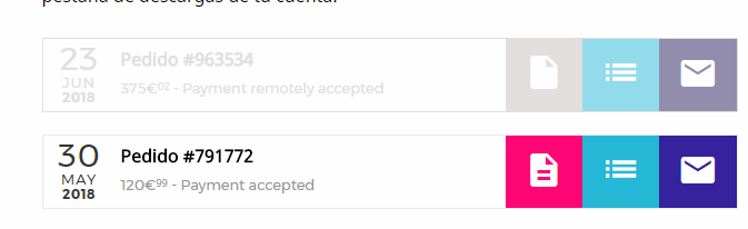 Buenas noches, mira para que veas la diferencia entre los botones, los botones del pedido de hoy, están como desactivados.