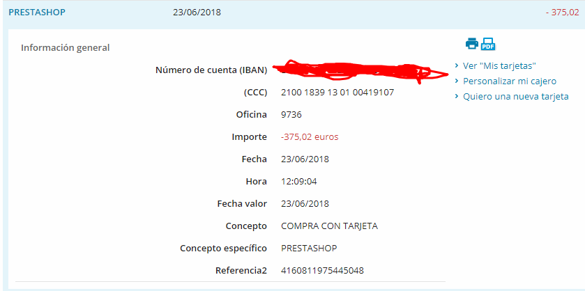 3- Entras en tu cuenta  "La del banco" y retocedes la operación