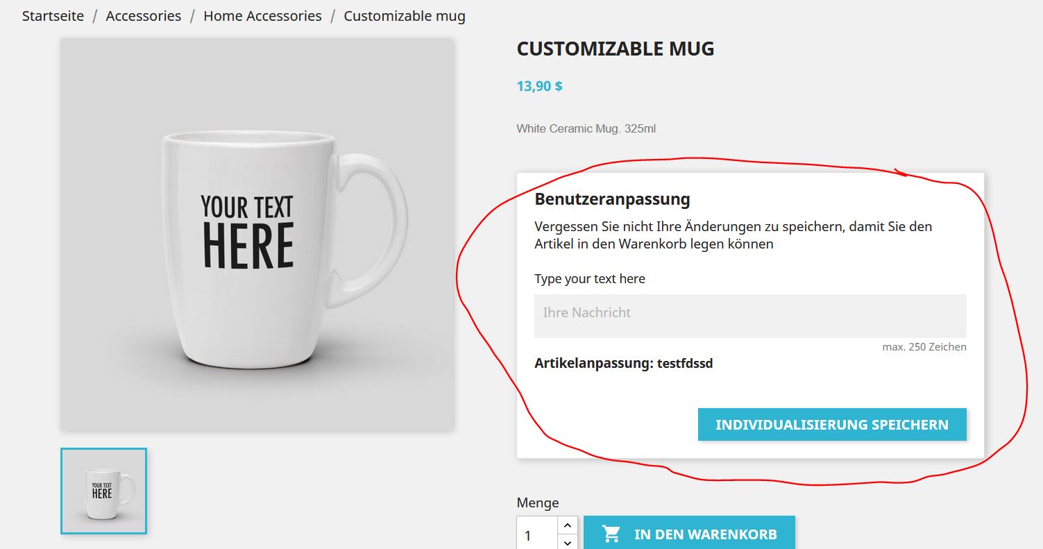 Auf der Startseite unter Produktvorschau im Popup sind "Farben" und "Dropdownfeld" vorhanden aber es fehlt das "Textfeld" so landet der Artikel direkt im Warenkorb.