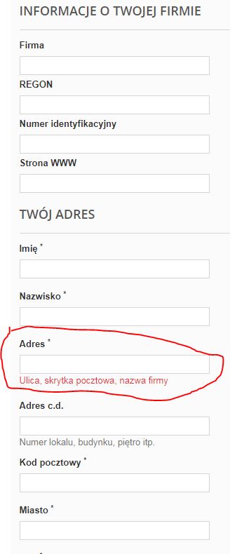 w formularzu rejestracyjnym mojego sklepu jest wymagane pole "Adres" ( na zdjęciu ) , na pozór nic specjalnego, aczkolwiek nie jestem go w stanie poprawnie wypełnić.