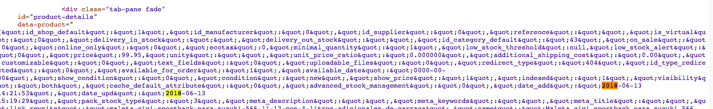 En el código fuente de el producto he buscado "2018" para determinar que puede estar mandando esa información, y me sale esto.