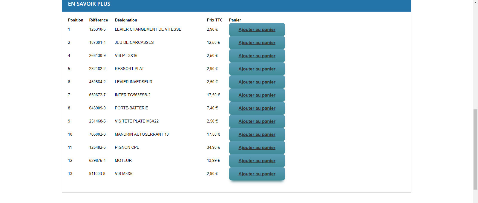 Je m'explique, j'afficherai la vue éclatée de la machine (qui comporte plusieurs position numérotées) et je laisserai au client le choix d'ajouter la position qu'il désire dans son panier (voir image en PJ).