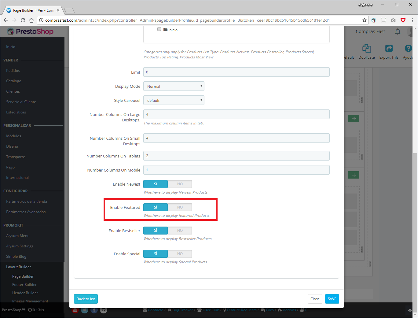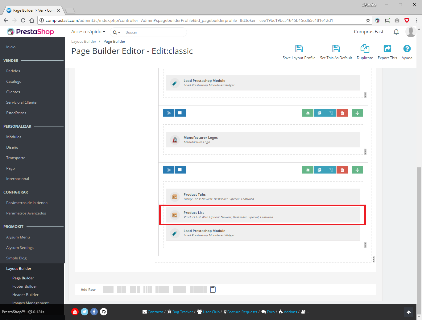 en donde este módulo no muestra lo que yo quiero y repite en la pestaña "todos, destacados y últimos" los mismos productos; además en la pestaña especiales (que son los productos con descuentos me muestra solo dos, cuando tengo configurados tres (uno de ellos, el que falta, es el que está a la izquierda en el sidebar (plataforma autopropulsada).