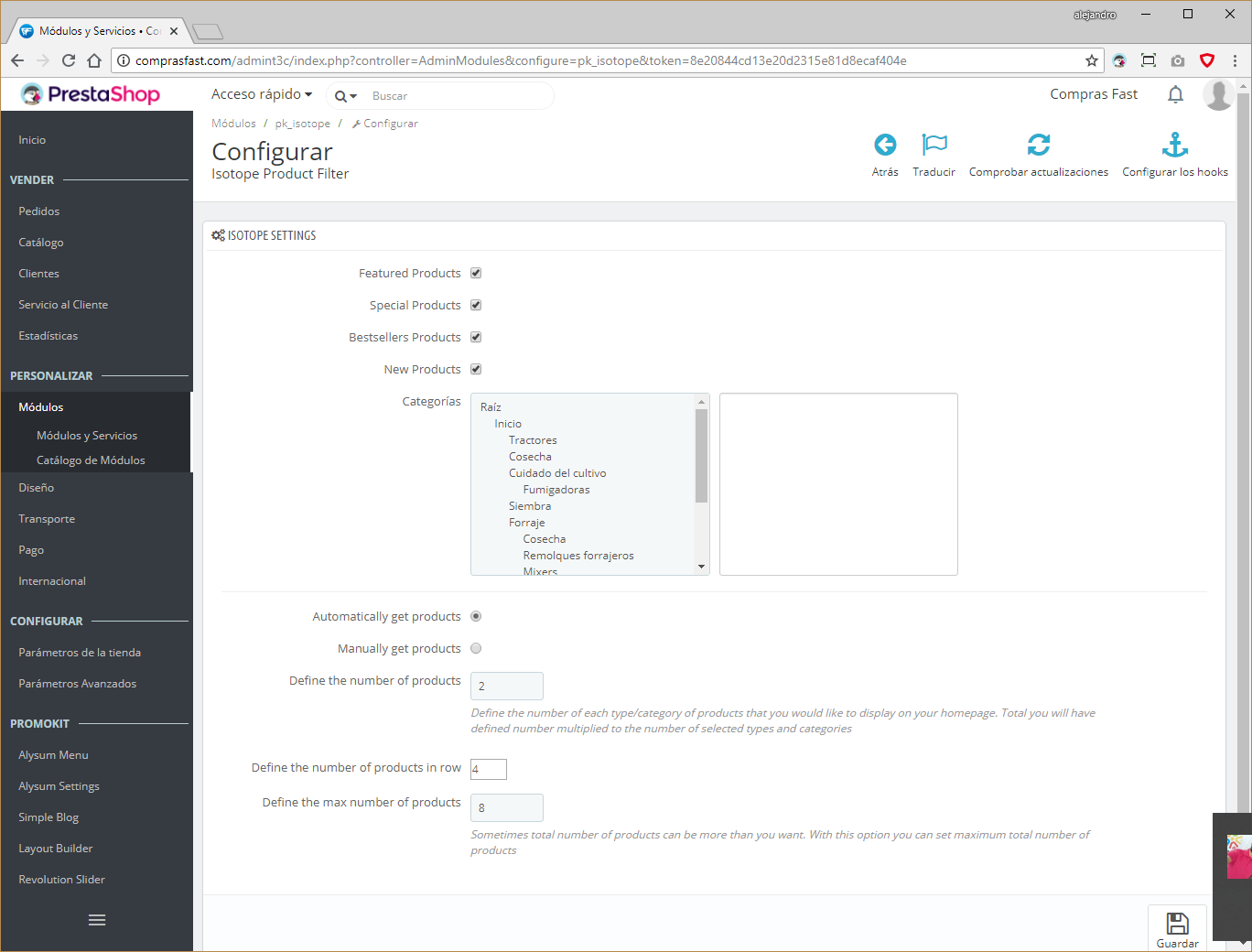 ahi esta mi triste padecer y es por esto que les pido ayuda, porque aparte de esto creo que es el problema que no deja funcionar el módulo principal que quiero utilizar para la tienda que es el "isotope product filter"