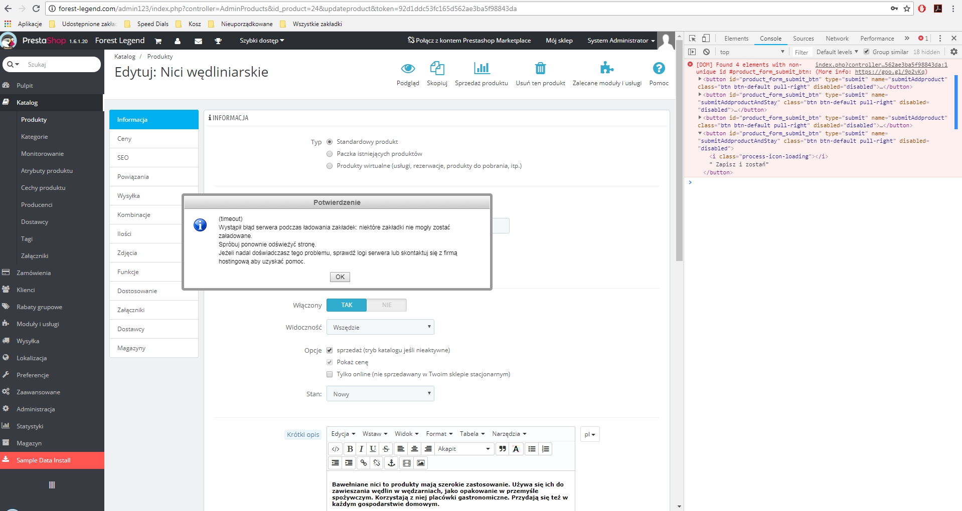 Od jakiegoś czasu przy edycji każdego produktu niemal zawsze pojawia mi się komunikat: