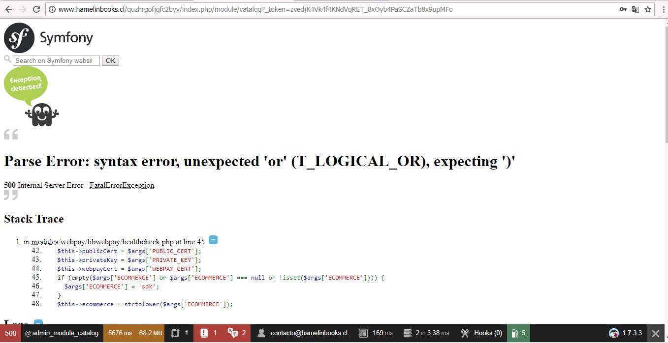 AliasWeb Posted July 4, 2018 Author Share Posted July 4, 2018 6 hours ago, joseantgv said: Habilita errores https://www.prestashop.com/forums/topic/575132-how-to-enable-debug-mode-on-prestashop-17-and-older-versions-turn-on-error-reporting-blank-page/ Realicé los pasos y me permanece el error. Al activar el modo depuración me aparece lo siguiente: Link to comment Share on other sites More sharing options...