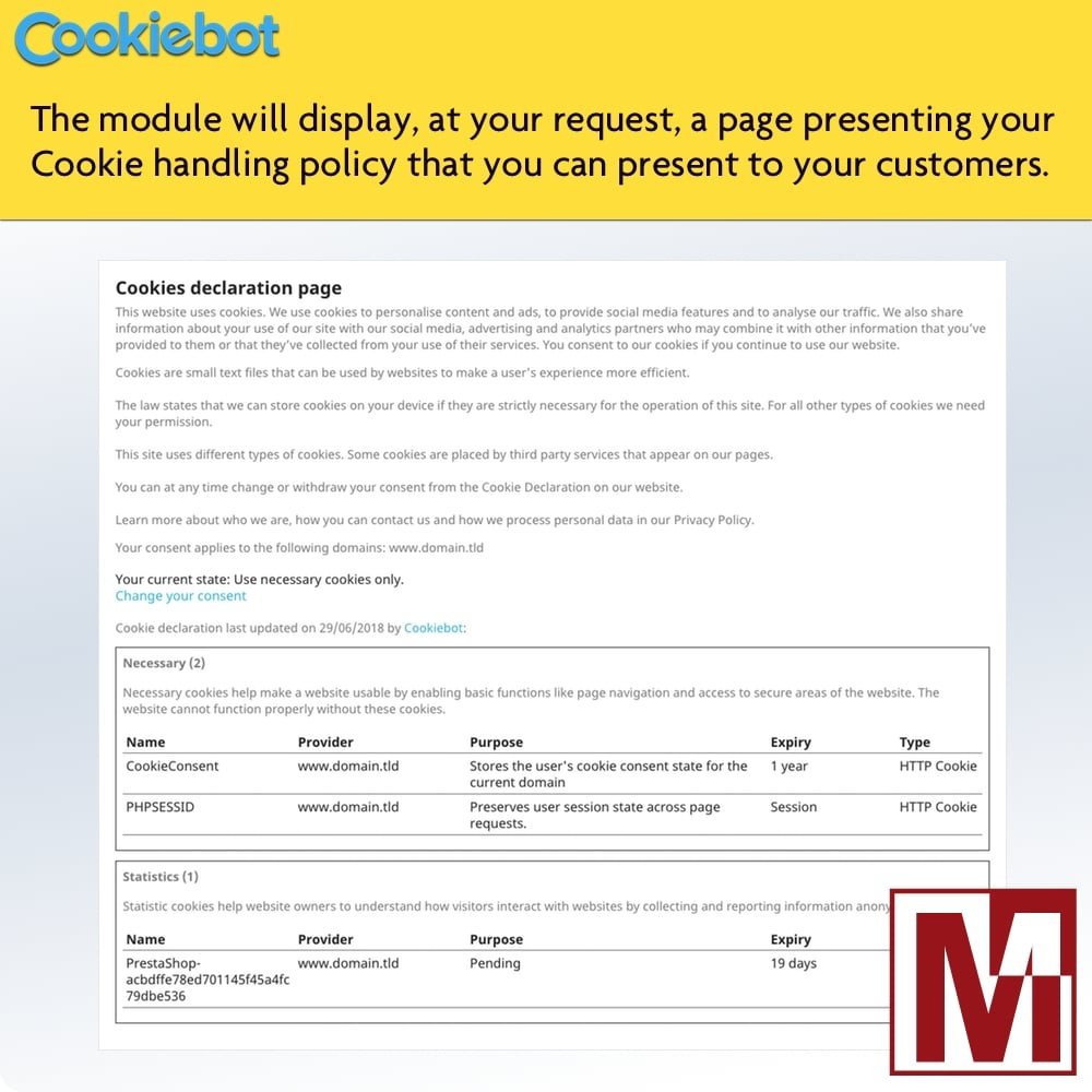 Mediacom87 Posted July 5, 2018 Share Posted July 5, 2018 (edited) Hi, Here is a new service integration module proposed by Cookiebot to best respect the RGPD for your cookies. Tired of complex GDPR rules and requirements? Cookiebot have made one part of the GDPR simple - cookies and online tracking. Cookiebot makes your cookies and online tracking GDPR compliant with just a module. Cookie consent Customized user consent for your website. Full compliance with GDPR. Cookie monitoring Automated scan to monitor and report all types of tracking on your website. Cookie control Control both first and third party cookies on your website with this module. Features Cookiebot consists of three main features: cookie consent cookie monitoring cookie control. By taking advantage of Cookiebot's services and installing this module on your site, you will improve your customers' confidence in your shop and naturally increase its sales. Images Video: Download: Prestatoolbox: https://www.prestatoolbox.com/advertising-marketing/426-gdpr-cookiebot-monitoring-and-control-of-cookies.html Addons: https://addons.prestashop.com/en/legal/39825-cookiebot-monitoring-and-control-of-cookies.html Edited March 5, 2023 by Mediacom87 (see edit history) Link to comment Share on other sites More sharing options...