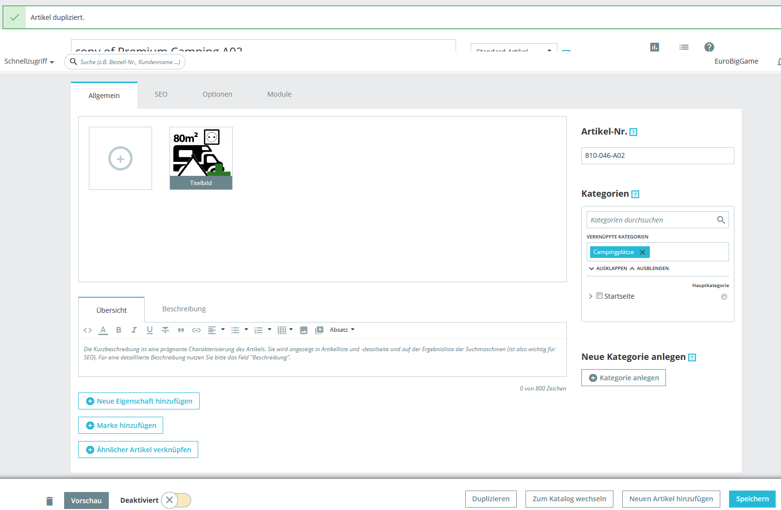 HumanHamster Posted July 6, 2018 Share Posted July 6, 2018 Hallo alle zusammen, folgendes Problem tritt auf (und ich habe bislang keine Lösung auf Google gefunden): Ich dupliziere einen bestehenden Standard-Artikel. Der neue Artikel wird ohne Fehlermeldung angelegt, allerdings fehlen die Mengen-, Preis- und Versand-Tabs, so daß ich diese Einstellungen nicht ändern kann. Ist dieses Problem bekannt bzw. gibt es vielleicht sogar eine Lösung? Prestashop v.1.7.3.3 Link to comment Share on other sites More sharing options...