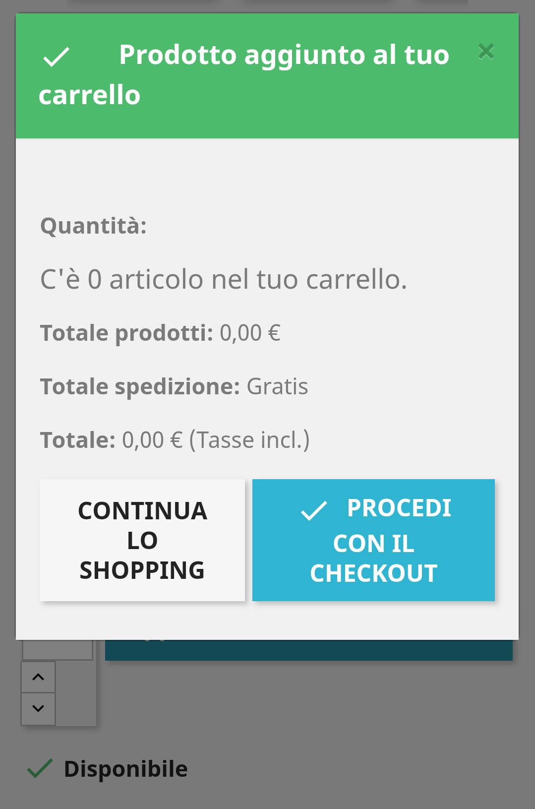 tecnicoM2 Posted July 11, 2018 Share Posted July 11, 2018 Salve, se provo ad aggiungere un prodotto al carrello da cellulare, non viene inserito. Si apre la pagina del carrello ma non compaiono prodotti e prezzi, come se fosse vuoto. Da pc non riscontro lo stesso problema ed ho provato con altri browser da mobile, ma il problema rimane. Da cosa può dipendere? Utilizzo il tema "classic" versione 1.0.0 e la versione di PrestaShop è la 1.7.3.0 Grazie Link to comment Share on other sites More sharing options...