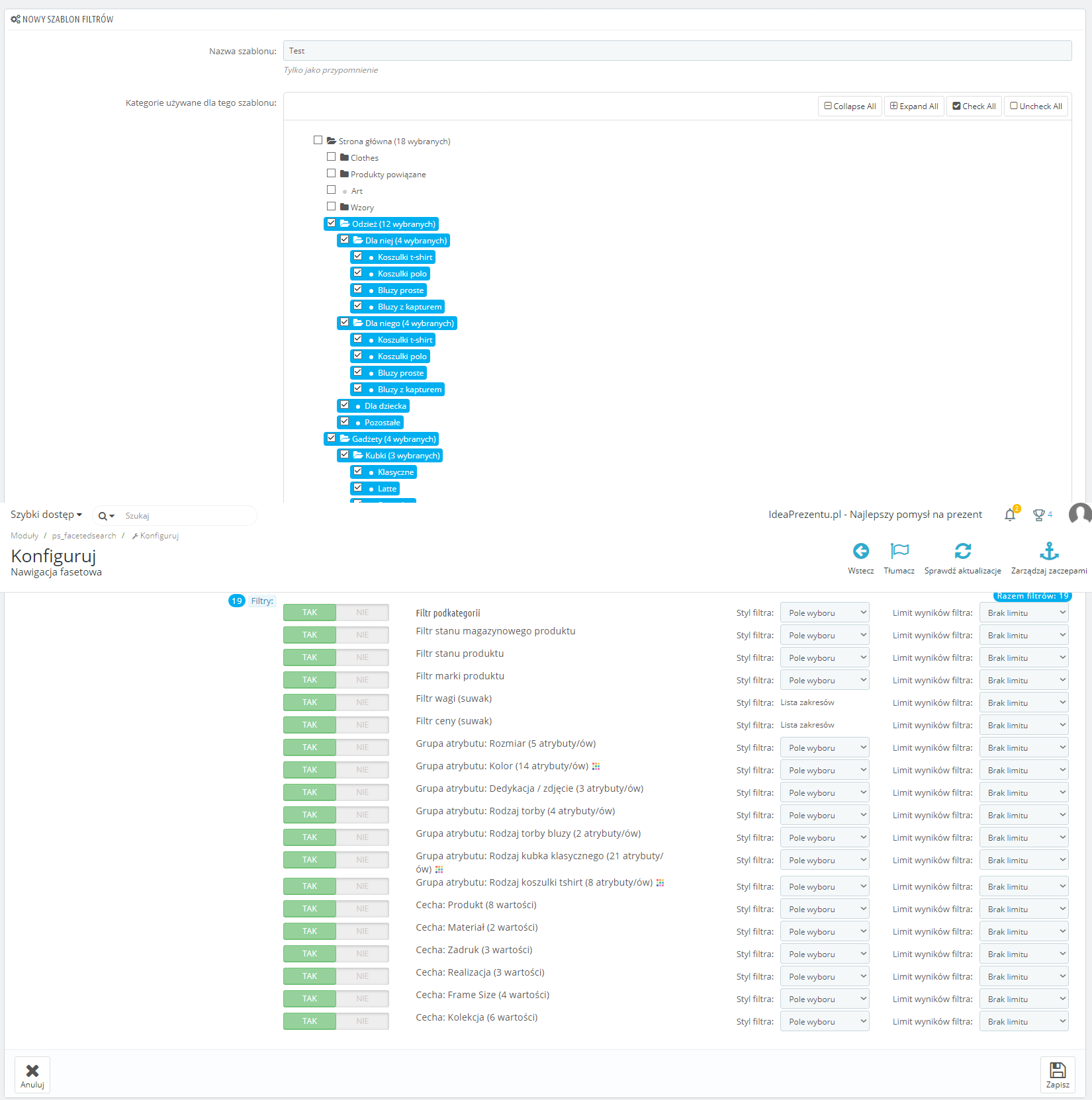 Do tej pory działałem głównie na Prestashop 1.6, niedawno postanowiłem przetestować dokładniej wersję 1.7. Wszystko niby działa OK ale problem występuje z filtrowaniem (Nawigacja Fasetowa).