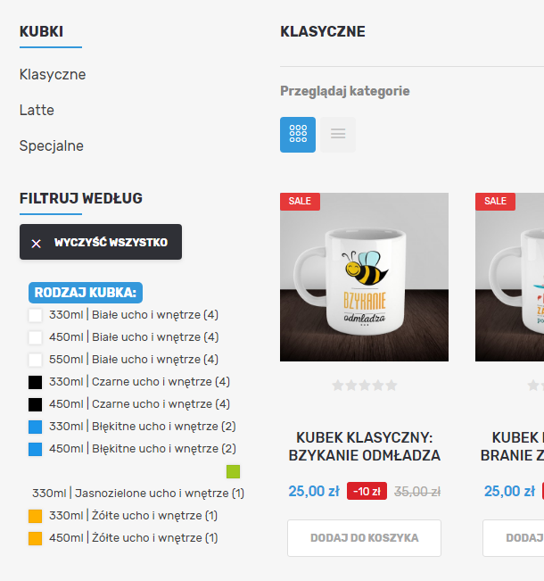 Produkujemy gadżety z nadrukiem i chciałem umożliwić filtrowanie produktów wg. kategorii, okazji czy też rodzaju produktu.