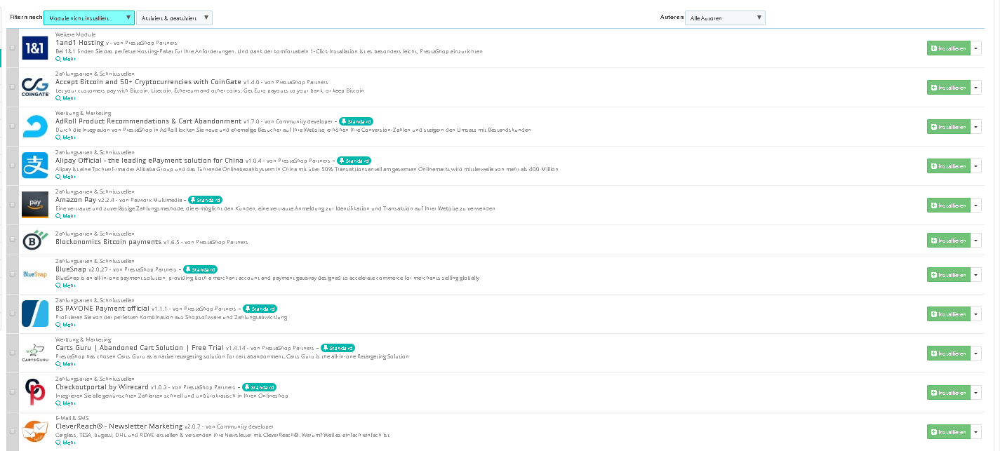 ANNA MEYER Posted July 15, 2018 Share Posted July 15, 2018 Übersicht aller Module "1 und 1 Hosting" oder "Coingate" oder auch "BlueSnap"... sind faszinierende Programm-Module, aber brauchen tue ich die nicht. Kann man das irgendwie de-installieren/löschen wenn man es absolut nie braucht? lG Anna Link to comment Share on other sites More sharing options...