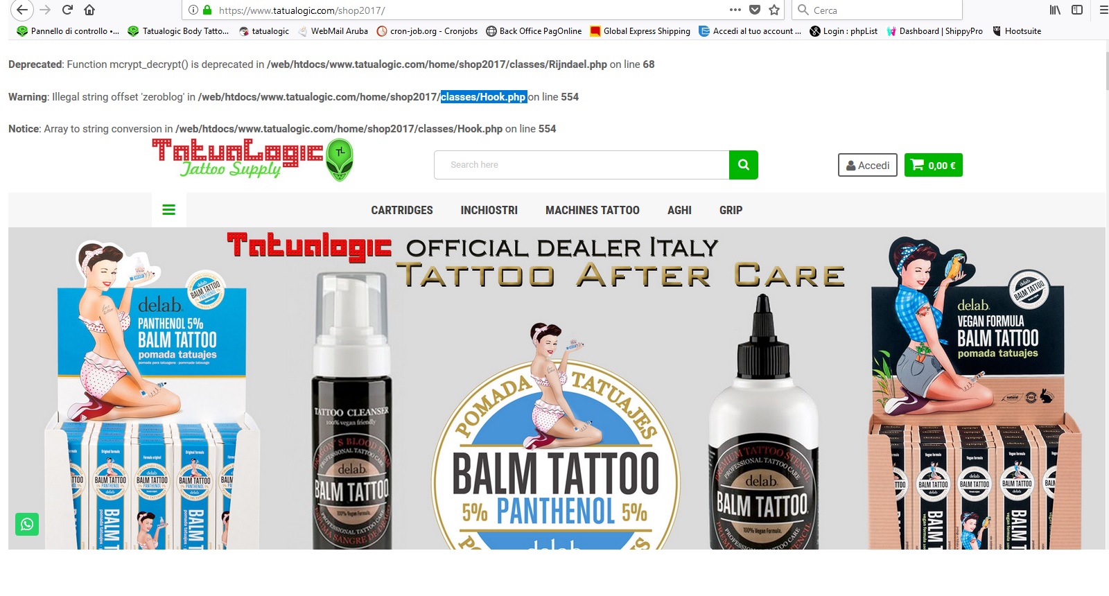 nufu88 Posted July 20, 2018 Share Posted July 20, 2018 salve ho il seguente problema non riesco ad entrare nel back office mi da error 500 metre il sito lo carica non entra solo in alcuni prodotti ho attivato la modalita debug e mi da le seguenti stringhe Deprecated: Function mcrypt_decrypt() is deprecated in /web/htdocs/www.tatualogic.com/home/shop2017/classes/Rijndael.php on line 68Warning: Illegal string offset 'zeroblog' in /web/htdocs/www.tatualogic.com/home/shop2017/classes/Hook.php on line 554Notice: Array to string conversion in /web/htdocs/www.tatualogic.com/home/shop2017/classes/Hook.php on line 554 ho reimportato il database ora sto riportando l'ftp qualcuno puo aiutarmi grazie Link to comment Share on other sites More sharing options...