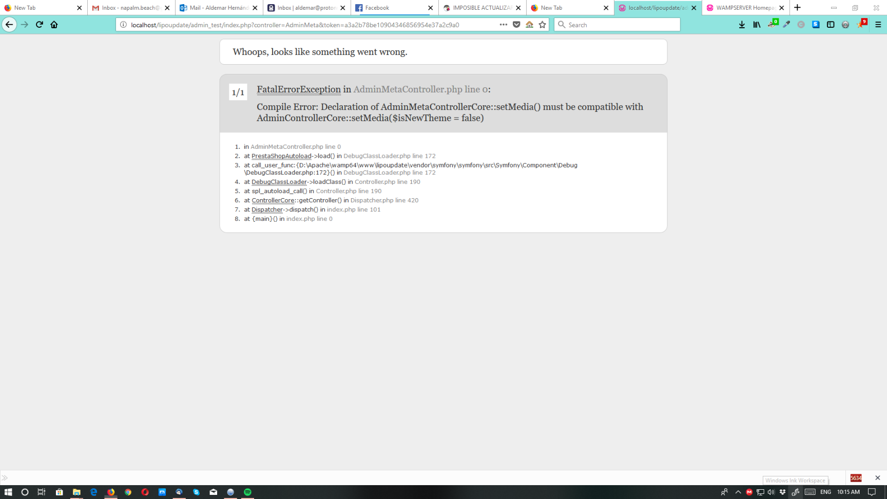 John Doe 00 Posted July 22, 2018 Author Share Posted July 22, 2018 Esto es lo que me aparece poniendo el servidor en PHP 7.2 y en modo debug (ya que normalmente me pone pantalla en blanco al entrar al administrador) Link to comment Share on other sites More sharing options...