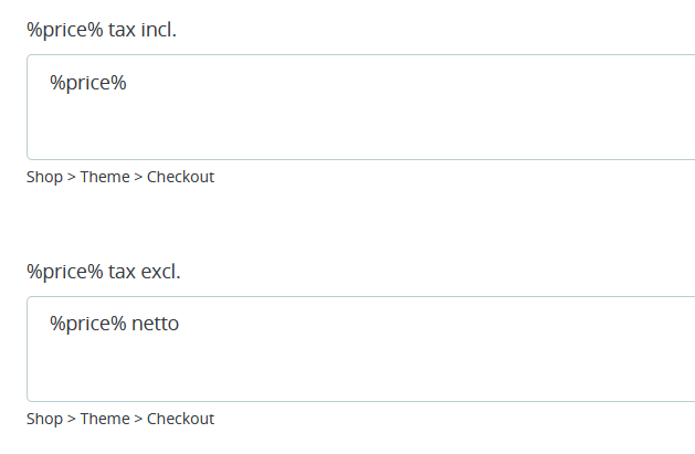 awrobl Posted April 2, 2022 Share Posted April 2, 2022 Yes, I have updated %price% tax incl. My translation contains only this %price% 1 Link to comment Share on other sites More sharing options...