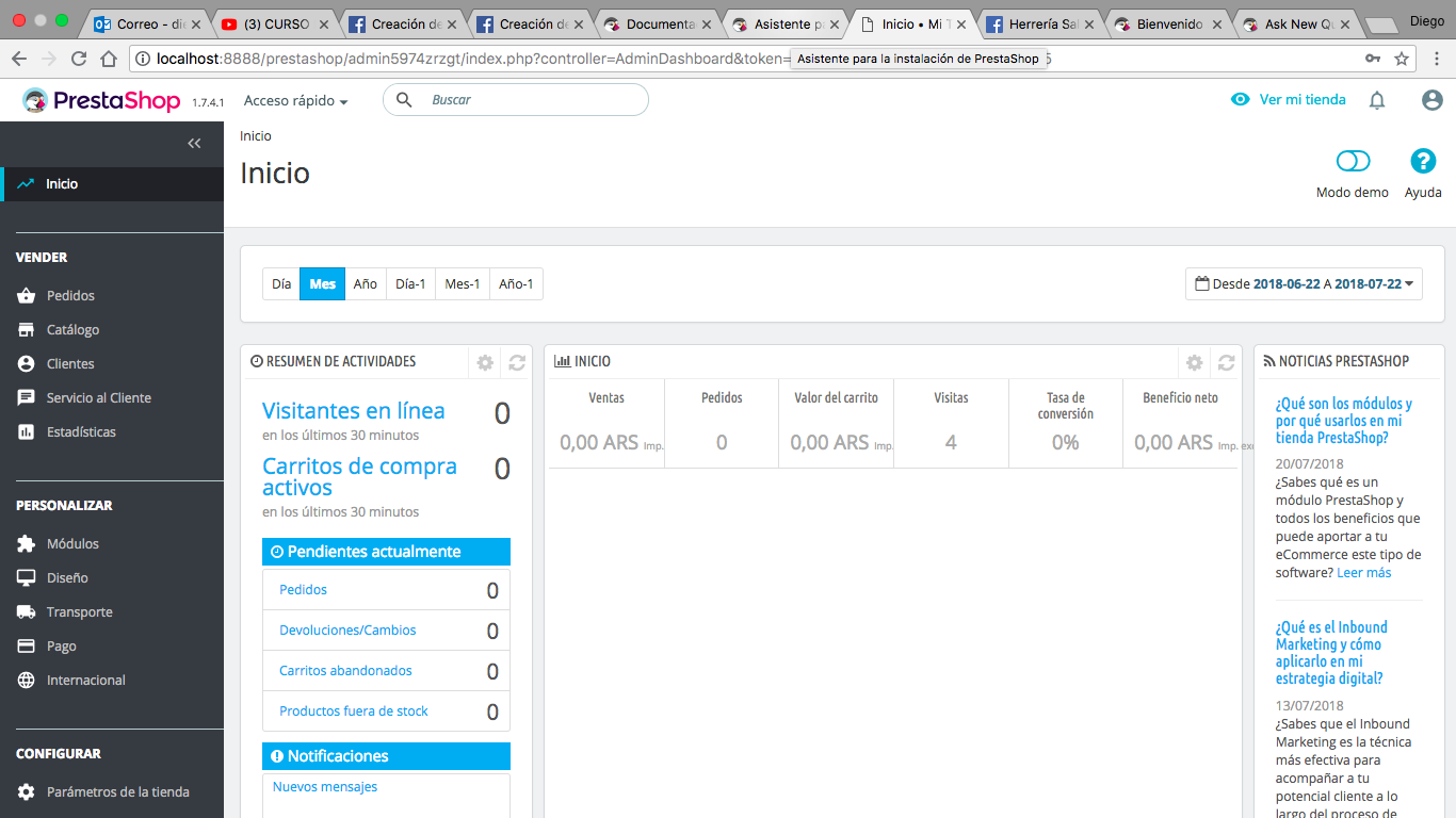 Diego Posted July 23, 2018 Share Posted July 23, 2018 Hola. Soy nuevo en PrestaShop y entre muchas barreras que tuve que pasar para instalar el software la siguiente todavía no lo puedo resolver. Cuando doy clic a la opción "Ver mi tienda" aparece la página sin los estilos de css. Aclaración importante: Estoy trabajando desde un servidor local. Utilizo Mampp. Agradezco mucho la ayuda que me puedan brindar. Link to comment Share on other sites More sharing options...